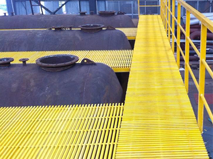 化工厂操作平台 化工厂原料储存会挥发一些腐蚀性气体,传统的金属平台一则会生锈、腐蚀,需要定期保养和维护;二则,在施工的过程中会有电火花出现,容易产生安全隐患。玻璃钢格栅以及楼梯解决了这些问题,轻便且免维护,施工简便,造型美观,赢得了客